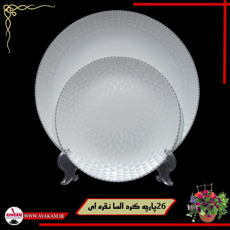 سرویس غذاخوری آرکوپال 26 پارچه گرد السا نقره ای گل اختصاصی