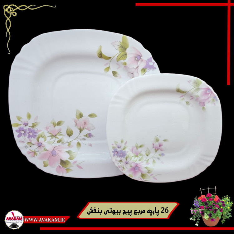 سرویس غذاخوری آرکوپال 26 پارچه مربع پیچ بیوتی بنفش