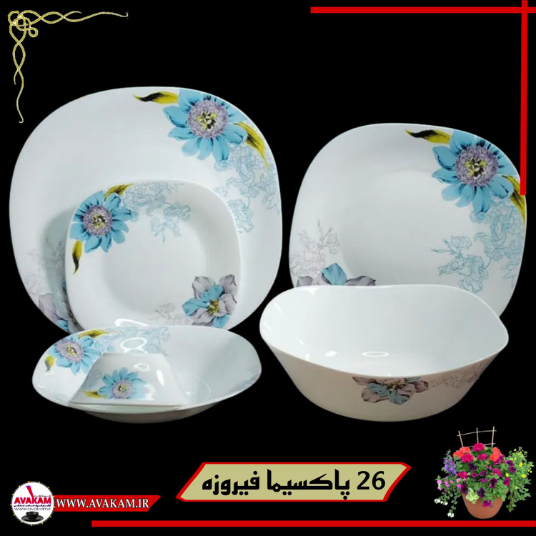 سرویس غذاخوری آرکوپال 26 پارچه مربع پاکسیما فیروزه