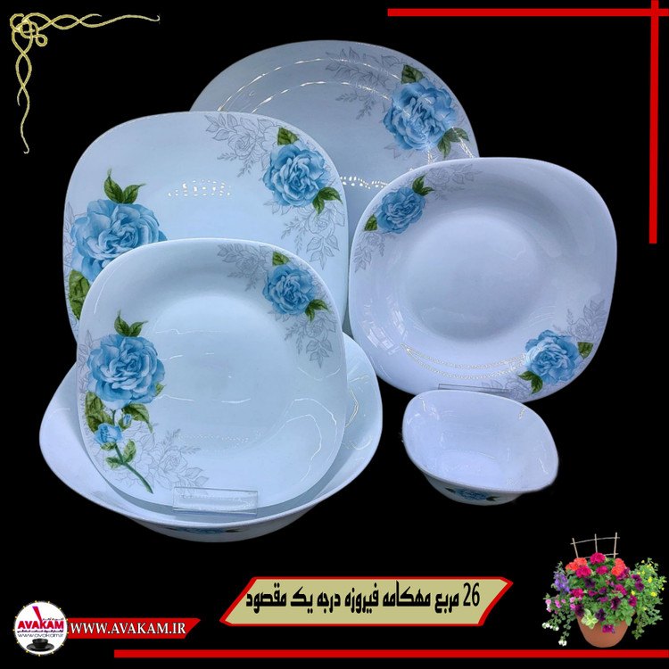 سرویس غذاخوری آرکوپال 26 پارچه مربع مهکامه فیروزه درجه یک مقصود