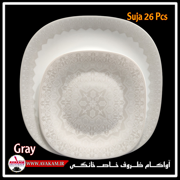 سرویس غذاخوری آرکوپال 26 پارچه مربع ( 6 نفره ) سوژا خاکستری