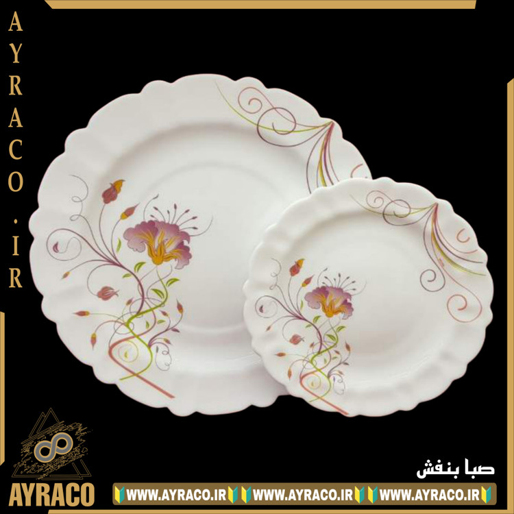 سرویس غذاخوری ۲۵ پارچه آرکوپال گرد کنگره ۶ نفره | طرح صبا بنفش | مقاوم و سبک
