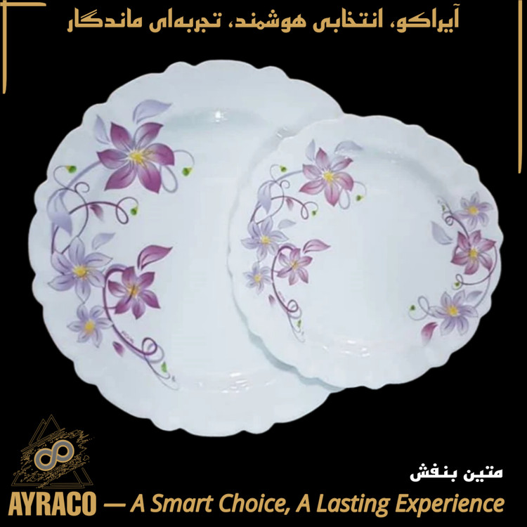 آرکوپال به دلیل ساختار شیشهای خاص خود، در برابر حرارت و شستوشوی مداوم مقاومت فوقالعادهای دارد. قالب گرد این مدل باعث میشود چیدمان ظروف روی میز چشمنوازتر باشد، و طراحی لبههای پیچدار آن جلوهای خاص به غذاخوری میدهد.