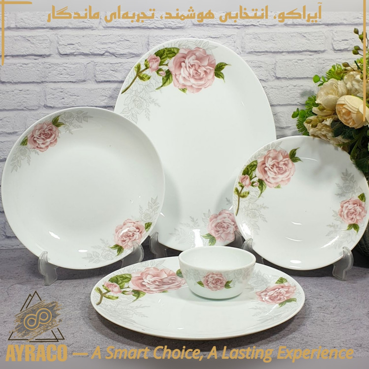 سرویس غذاخوری ۲۵ پارچه آرکوپال گرد ۶ نفره | طرح مهکامه صورتی | مقاوم و سبک