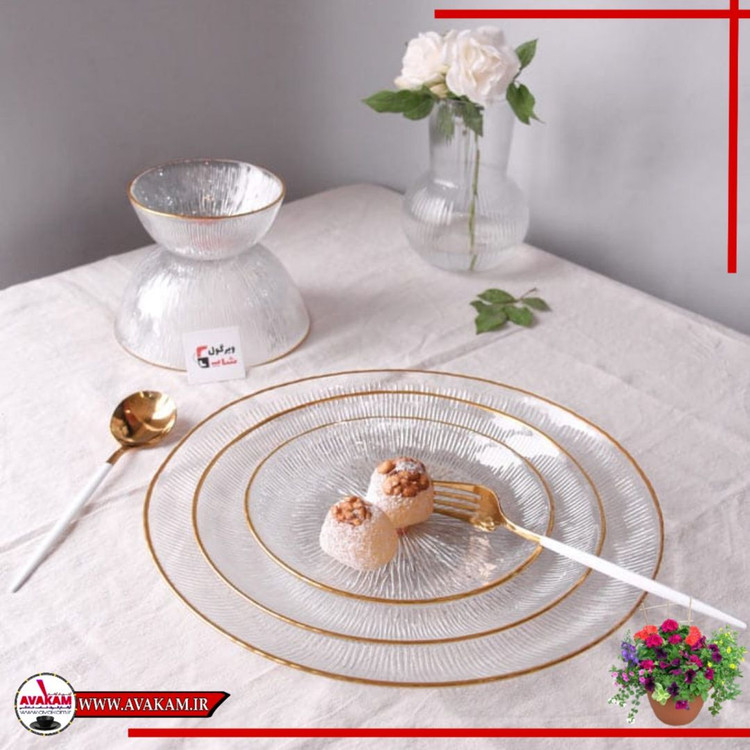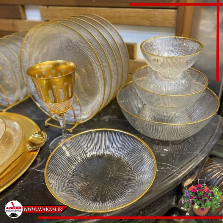 سرویس غذاخوری بلور 33 پارچه سولو لب طلا نوری تازه | ۶ نفره