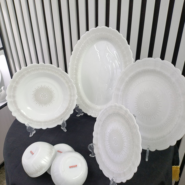 جنس این ظروف از آرکوپال مقاوم (Opal Glass) ساخته شده که علاوه بر شباهت ظاهری به چینی، سبکتر و مقاومتر در برابر ضربه و حرارت است. طراحی قالب کنگرهای و الگوهای طرحهای جدید، این سرویس را با سایر ظروف مدرن آشپزخانه هماهنگ میکند و جلوهای لوکس و کاربردی ایجاد میکند.