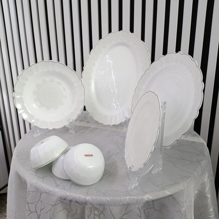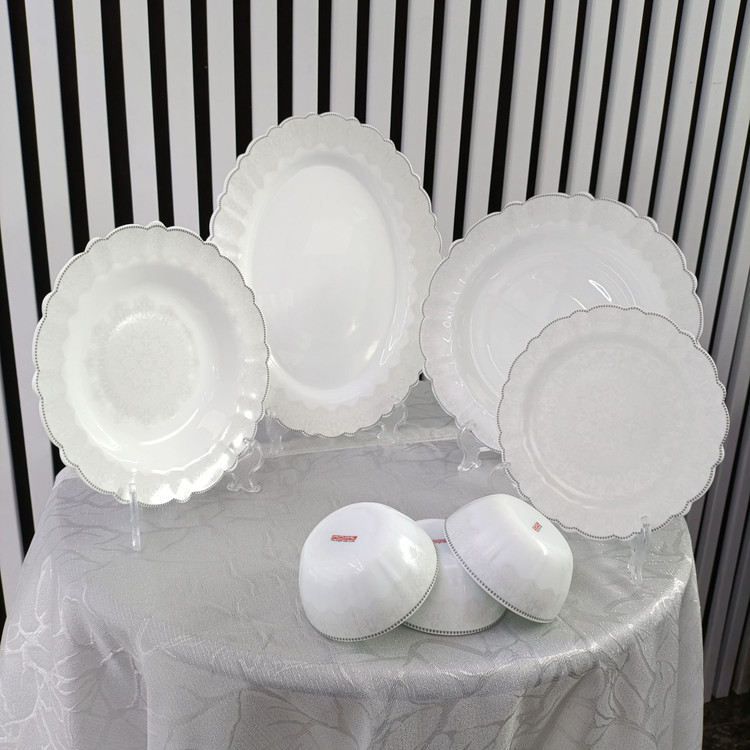سرویس ۲۵ پارچه قالب کنگره طرحهای جدید، کیفیت و مقاومت مشابه سرویس ۲۶ پارچه دارد، اما کاسه سالاد ندارد.