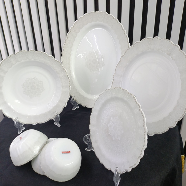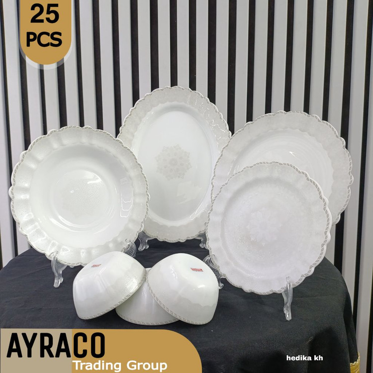 سرویس ۲۵ پارچه قالب کنگره طرحهای جدید، کیفیت و مقاومت مشابه سرویس ۲۶ پارچه دارد، اما کاسه سالاد ندارد.