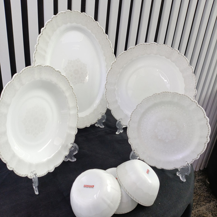 سرویس ۲۵ پارچه آرکوپال هدیکا خاکستری قالب کنگره طرحهای جدید – کارخانه مقصود | شیک و کاربردی