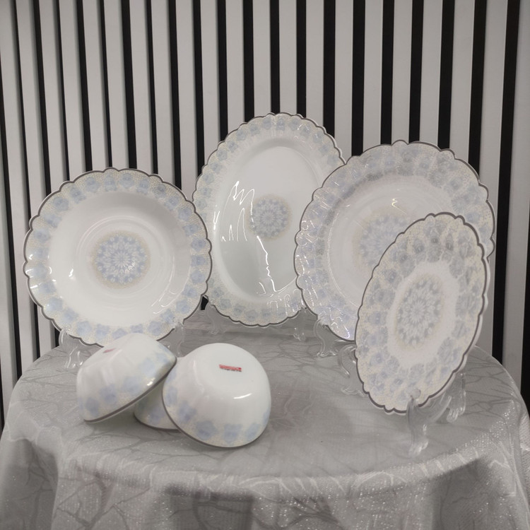 سرویس ۲۵ پارچه قالب کنگره طرحهای جدید، کیفیت و مقاومت مشابه سرویس ۲۶ پارچه دارد، اما کاسه سالاد ندارد.