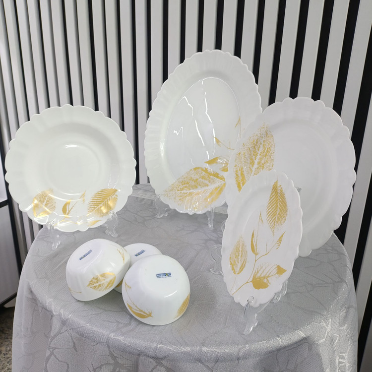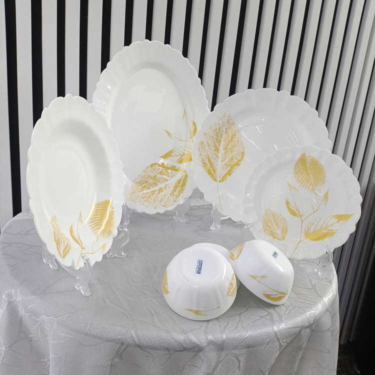 جنس این سرویس از آرکوپال مقاوم (Opal Glass) ساخته شده که علاوه بر شباهت به چینی، سبکتر و بادوامتر بوده و در برابر ضربه و حرارت مقاوم است. طراحی قالب کنگرهای باعث جلوهی ویژه و هماهنگی با انواع ظروف دیگر میشود.
