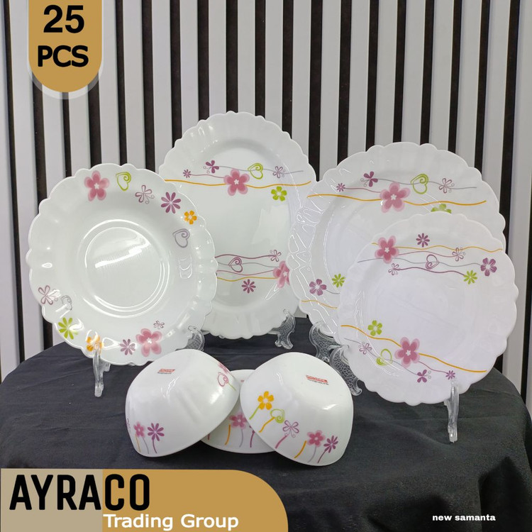 سرویس ۲۵ پارچه آرکوپال نیو سامانتا گلهای نوستالژی (قدیمی) قالب کنگره | شیک و کاربردی