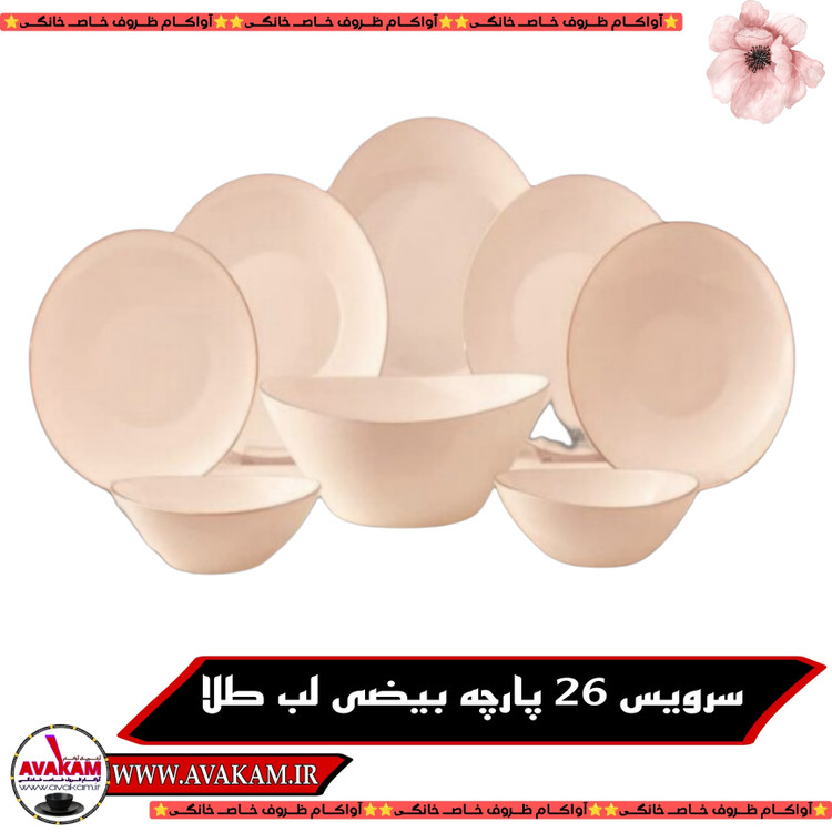سرویس غذاخوری آرکوپال 26 پارچه ( 6 نفره ) بیضی لب طلا دینو