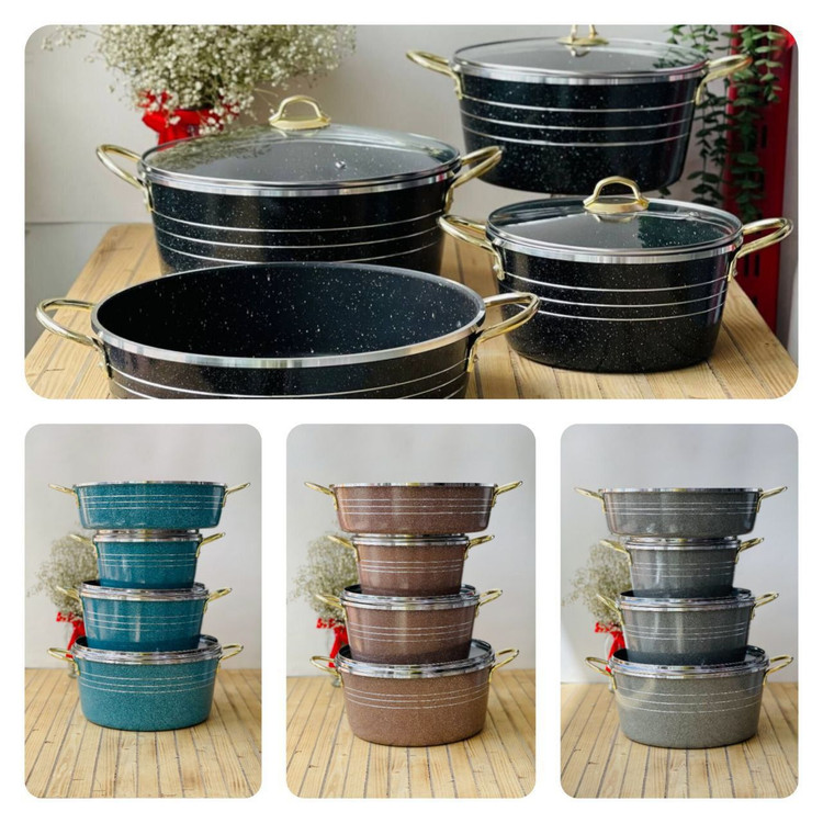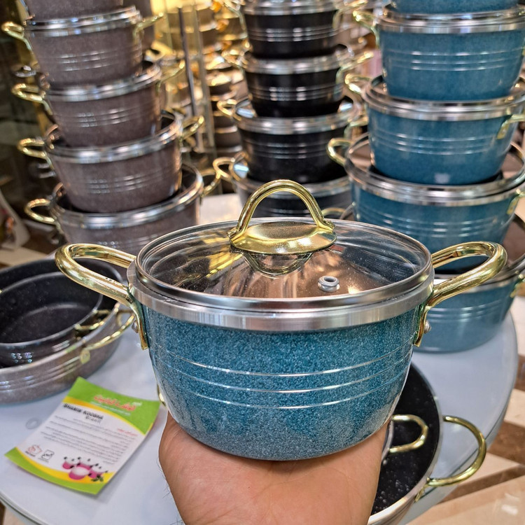 جنس داخلی ظروف از گرانیت باکیفیت و بادوام است که در برابر خطوخش، حرارت و شستوشو مقاومت بالایی دارد و برای پخت و پز سالم و بدون چسبندگی طراحی شده است.