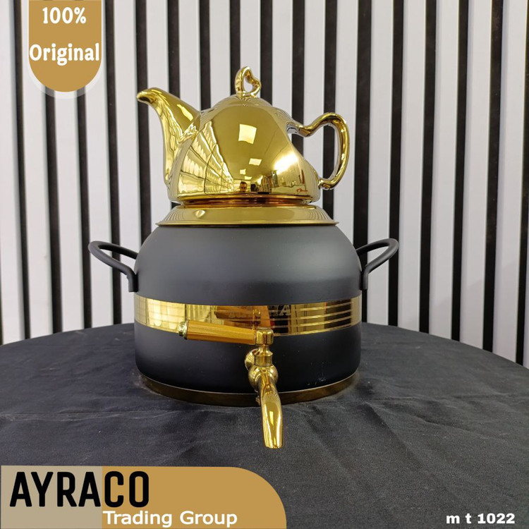 کتری و قوری استیل راشا مشکی طلایی 1022 | طراحی لوکس و کیفیت ممتاز