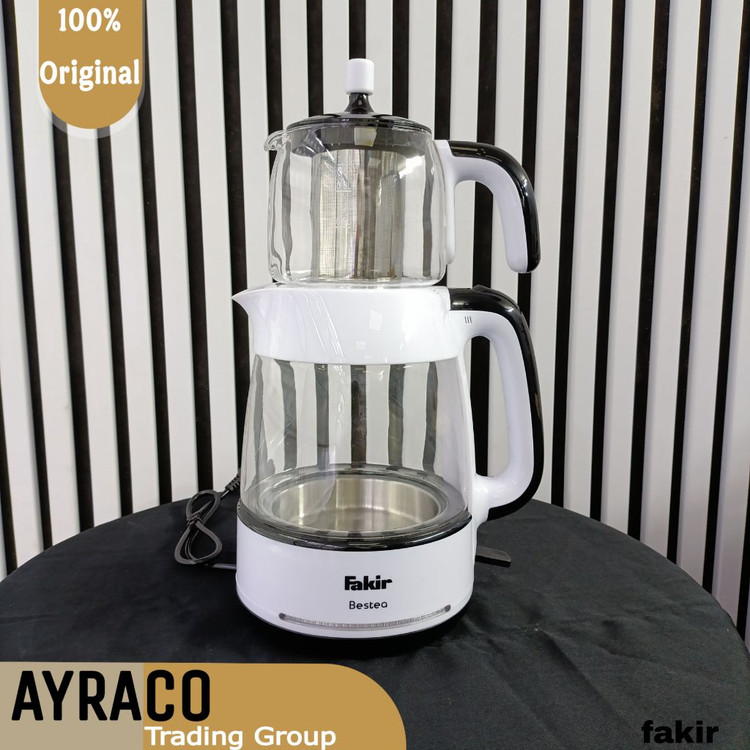 چای ساز 2.5 لیتر شیشهای فکیر سفید بدون سیم با قوری 1 لیتر شیشهای و فیلتر