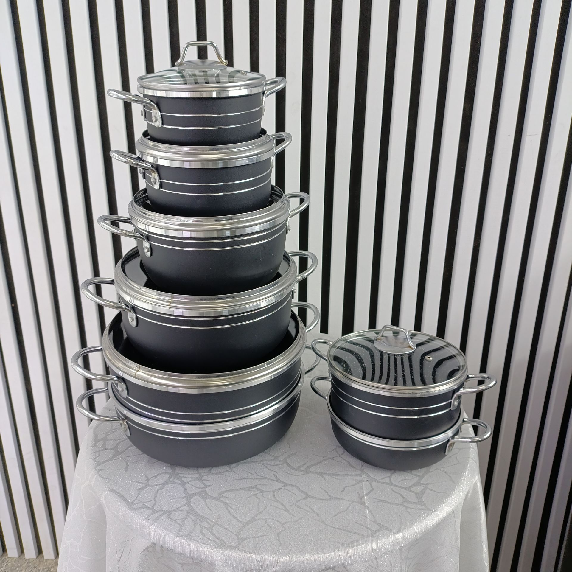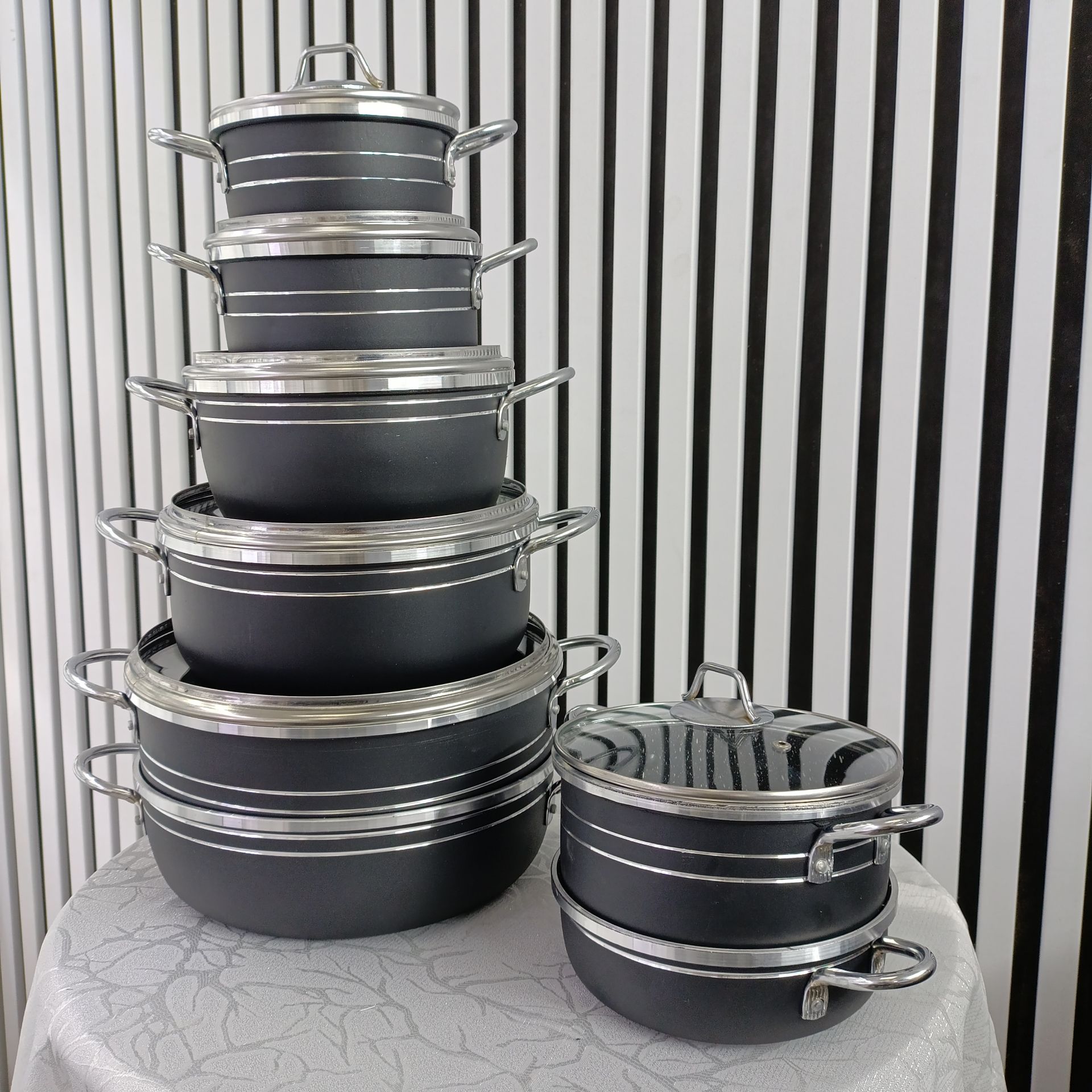 سرویس ۱۴ پارچه قابلمه مشکی گرانیتی اپیروس – مجموعه حرفهای قابلمه و تابه با پوشش مقاوم