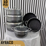 سرویس ۱۰ پارچه قابلمه سربی گرانیتی اپیروس – مجموعه حرفهای قابلمه و تابه در سایزهای بزرگ و کاربردی