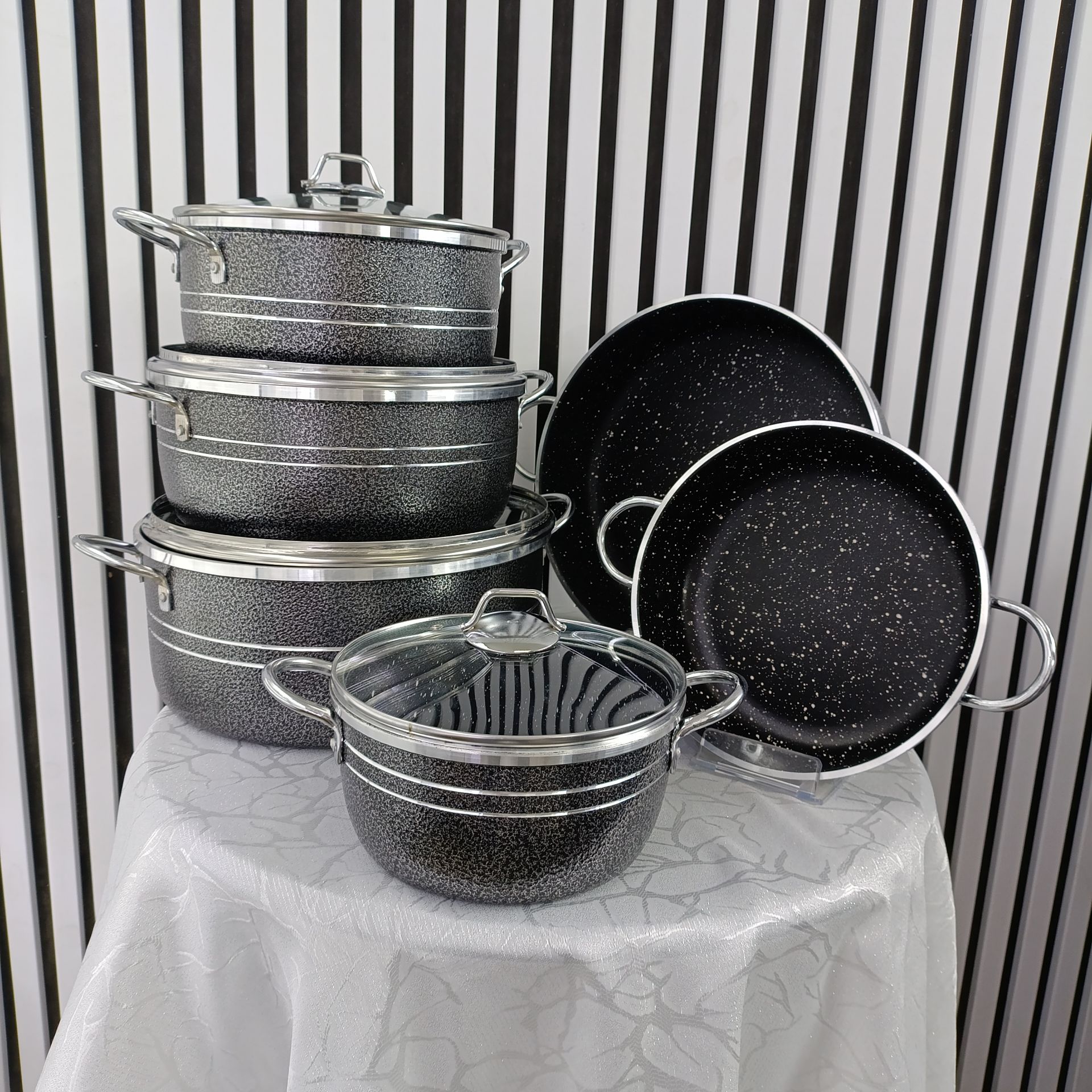 سرویس ۱۰ پارچه قابلمه سربی گرانیتی اپیروس – مجموعه حرفهای قابلمه و تابه در سایزهای بزرگ و کاربردی