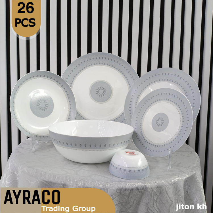 سرویس ۲۶ پارچه کف گل طرح جیتون خاکستری قالب گرد – تولید کارخانه مقصود کپی