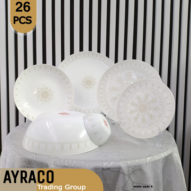 سرویس ۲۶ پارچه کف گل طرح مهر اذر کرم قالب گرد – تولید کارخانه مقصود کپی