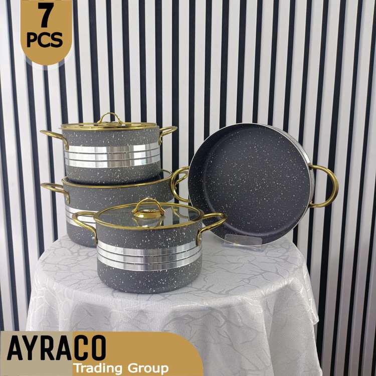 سرویس قابلمه 7 پارچه رنگ طوسی ترک برند هیشو | قابلمه حرفهای آشپزخانه