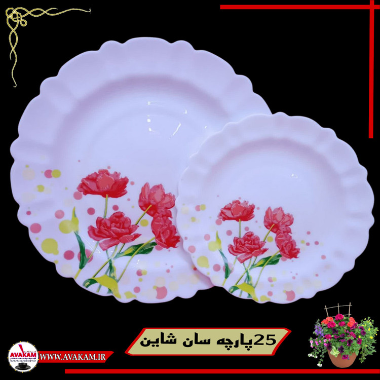 سرویس غذاخوری آرکوپال 25 پارچه سان شاین قرمز کنگره