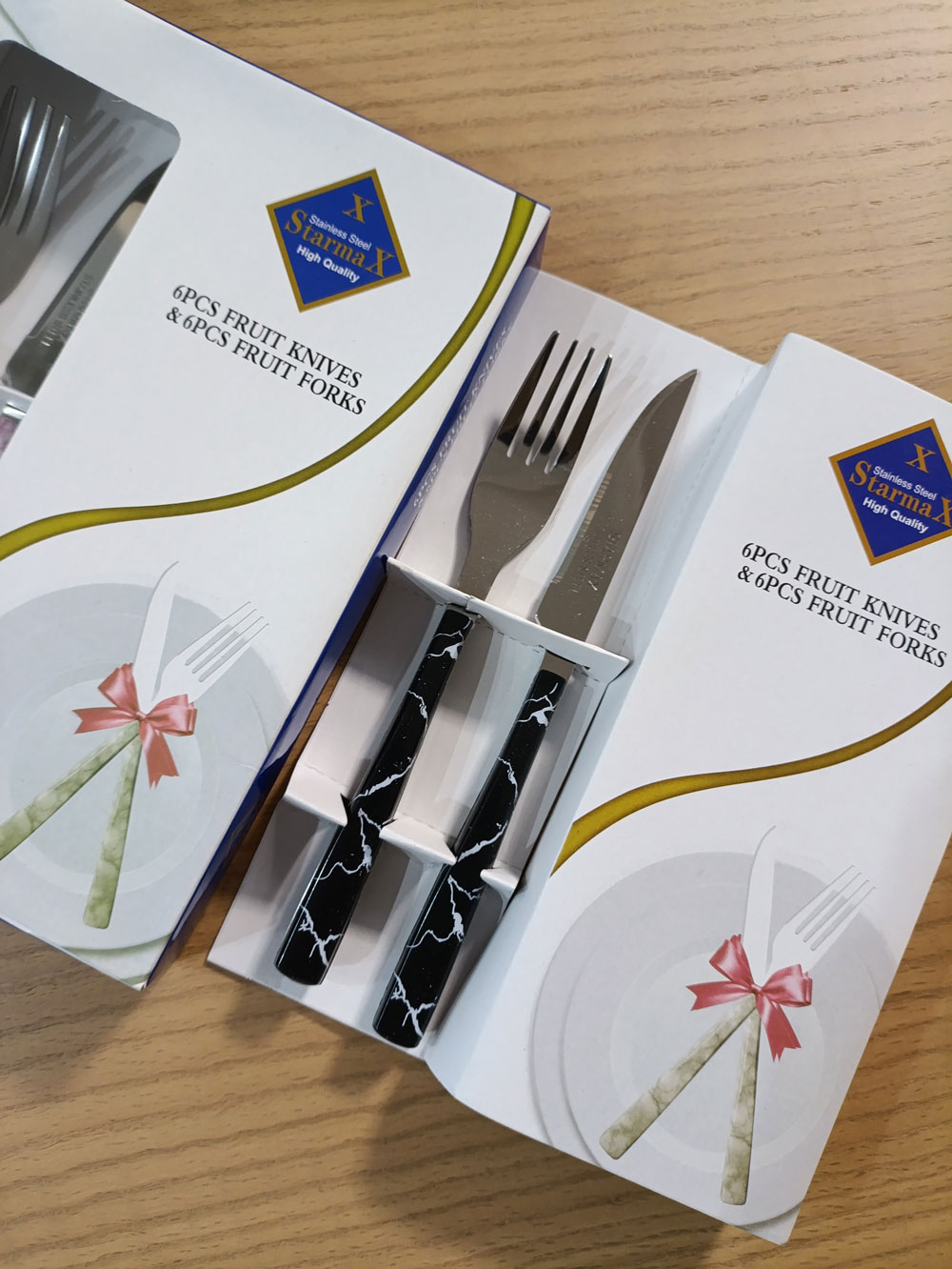 کارد و چنگال طرح ماربل کد 207 گزینه ایده آل برای خانواده های شیک و لوکس است این محصول طرح و رنگ مختلف دارد مناسب با هر سلیقه ای است جنس کارد و چنگال از استیل ضدزنگ ساخته شده است.