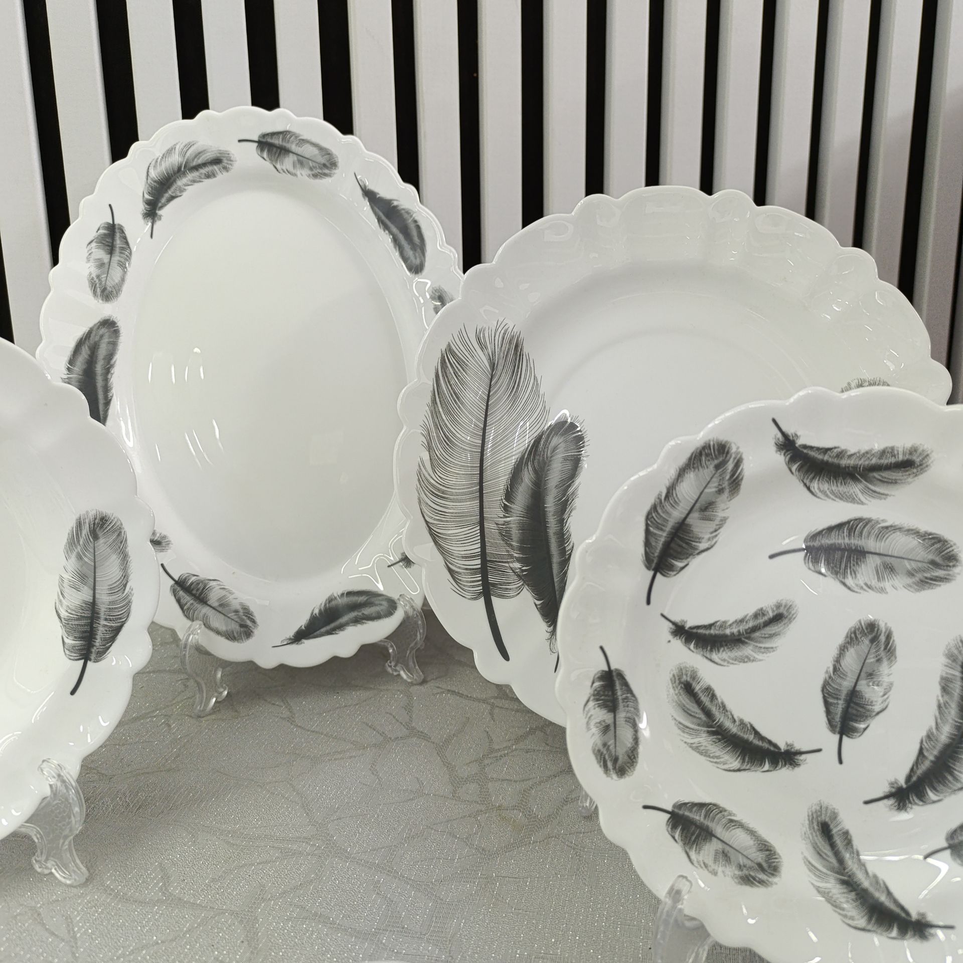 این سرویس از آکروپال درجه یک و فشرده (Durable Melamine) ساخته شده که در عین سبکی، استحکامی قابل توجه دارد و از آن یک ظرف ضدضربه و ضدشکستگی ایمن برای استفاده روزمره و مهمانیها ساخته است. رنگ مشکی یکدست و عمیق آن، همراه با خطوط و طرحهای ظریف احتمالی، جلوهای کلاسیک و هماهنگ با هر سفرۀ مدرن یا سنتی ایجاد میکند.