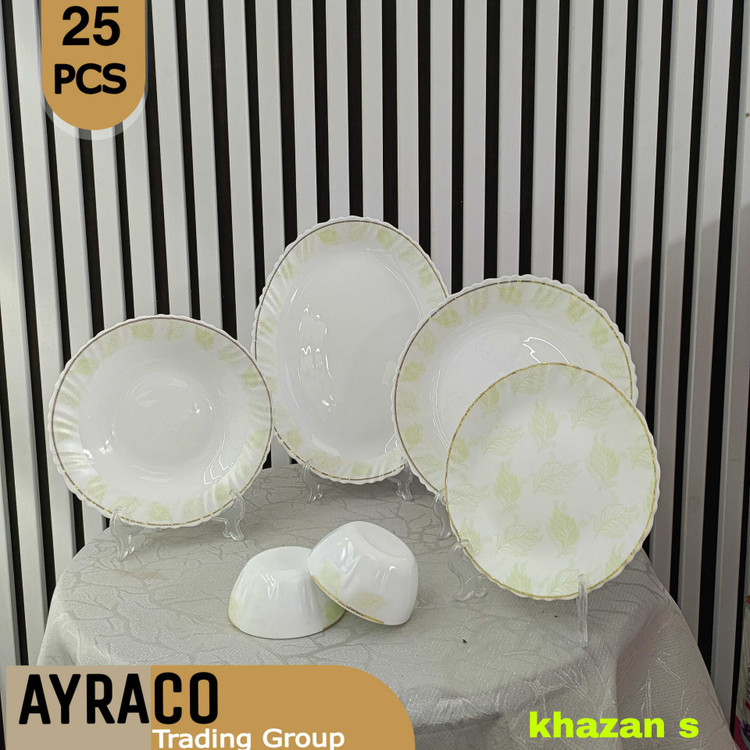 سرویس غذاخوری ۲۵ پارچه طرح خزان سبز برند لئون | خرید ست بشقاب طرح پاییزی