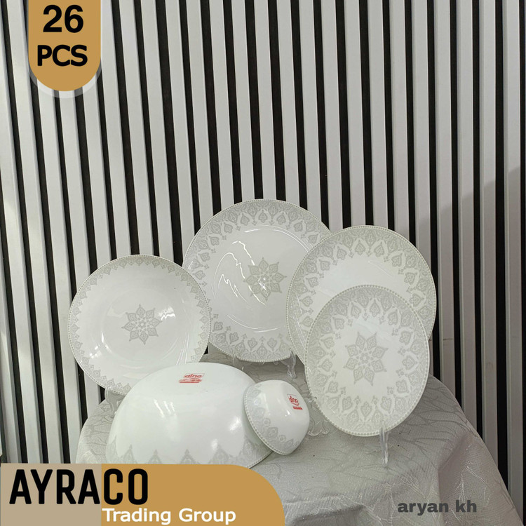 سرویس غذاخوری 26 پارچه آریان خاکستری برند دینو | خرید سرویس غذاخوری 6 نفره لوکس