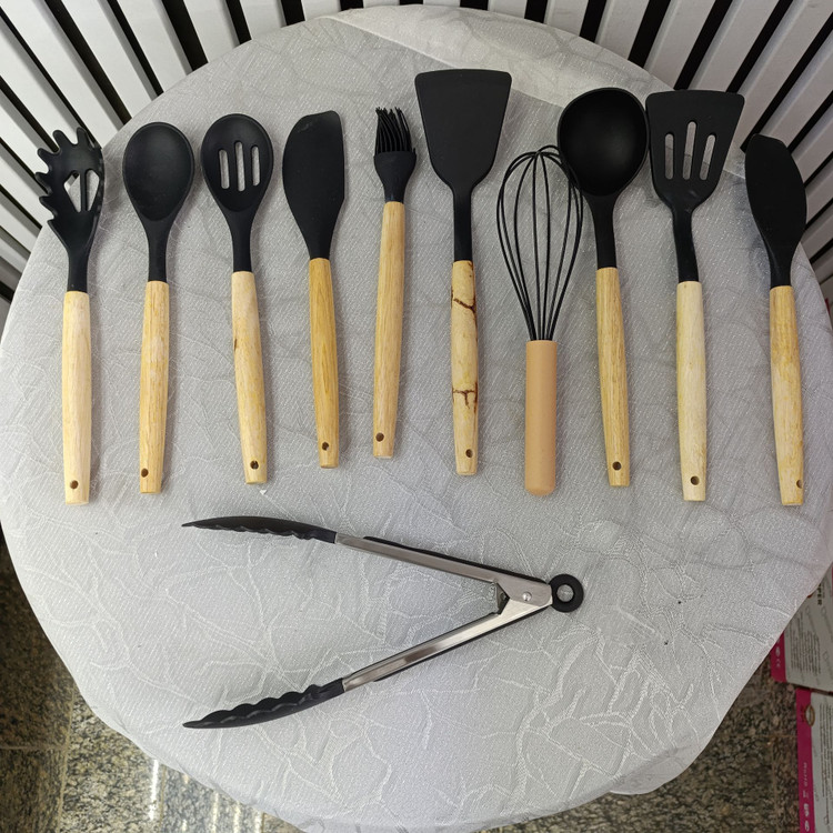 ست 12 پارچه کفگیر و ملاقه سیلیکونی مشکی | ابزار آشپزی نسوز، نچسب و بادوام