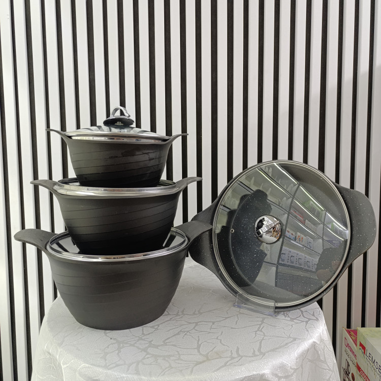 سرویس قابلمه 8 پارچه چدنی هدیه (مشکی) - 3 قابلمه + 1 تابه
