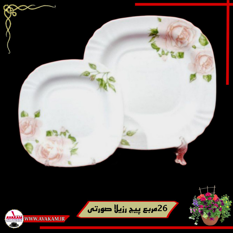 سرویس غذاخوری آرکوپال 26 پارچه ( 6 نفره )مربع پیچ رزیلا صورتی درجه یک صف