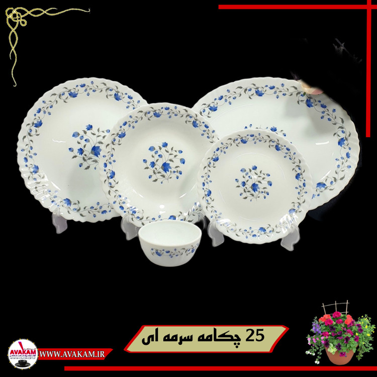 سرویس غذاخوری آرکوپال 25 پارچه چکامه سرمه ای گرد پیچ
